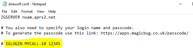 Otro aspecto a considerar ANTES de proceder a la configuración del software DireWolf, es que para que nuestro nodo IGate pueda “reportarse” en los servidores mundiales de APRS es necesario contar con un registro de acceso a ellos (login y password), y esto no es ningún problema ya que cualquier radioaficionado CON LICENCIA puede solicitar esa información por medio de la siguiente página. https://apps.magicbug.co.uk/passcode/