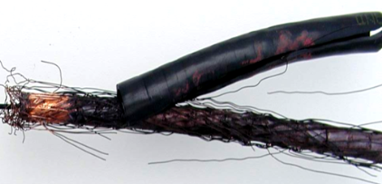 - Instalación mecánica pobre: Cinchos (ty-raps) demasiado apretados que estrangulan el dieléctrico y deforman la «coaxialidad» del cable haciendolo que cambie su forma fisica y por lo tanto sus caracterisitcas eléctricas y magnéticas o cables que de mueven o «flamean» con el viento y terminan con desgastes por fricción o, de plano, degollándose.