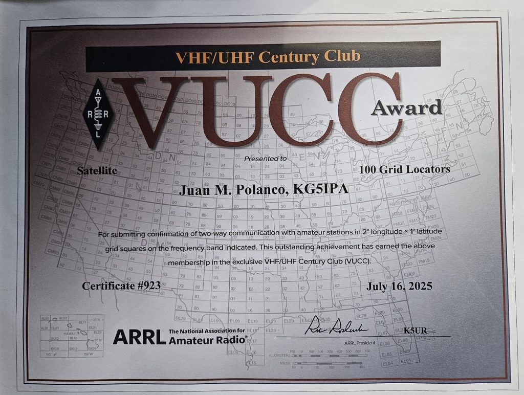 Reconocimientos de Juan Polanco KG5IPA Miembro Activo del CRECJ y Miembro del HQ :