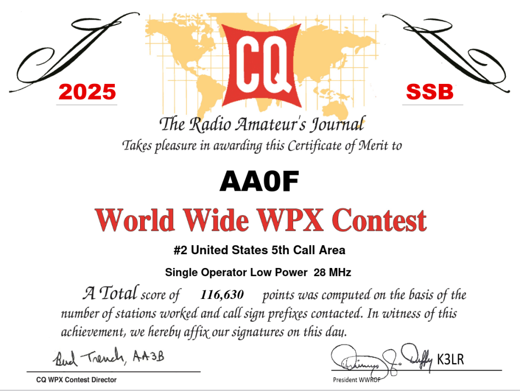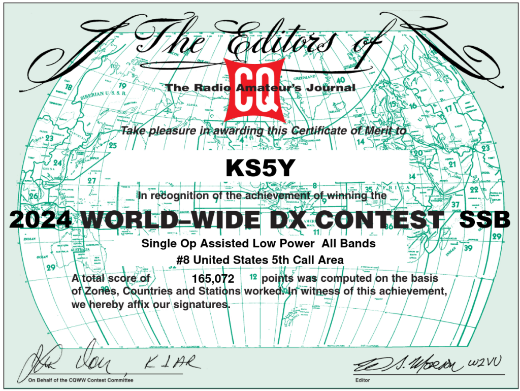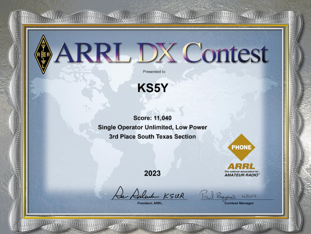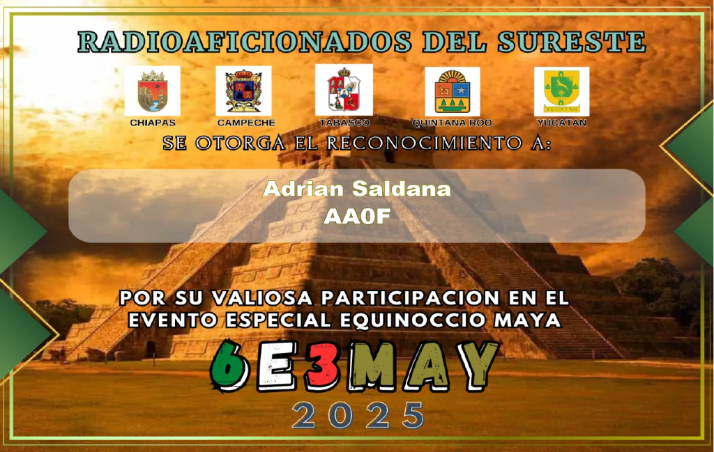 Reconocimientos de Adrian Saldaña AA0F/KS5Y Miembro Activo del CRECJ y Miembro del HQ